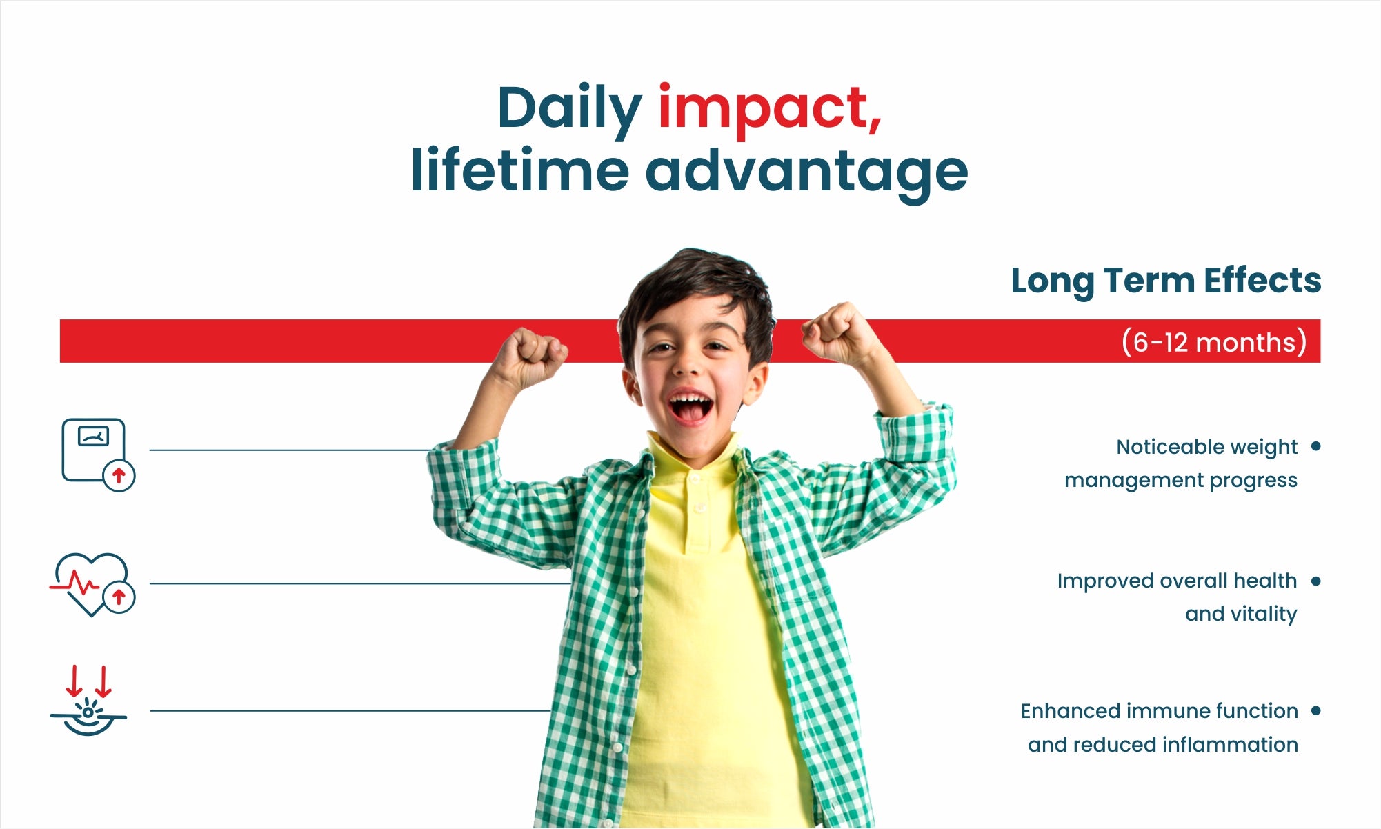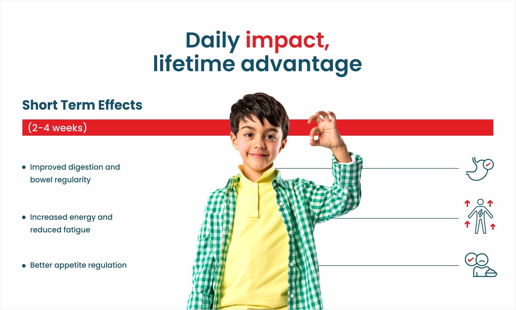 Most children experience improved digestion and energy levels within 2-4 weeks, with noticeable weight management benefits in 3-6 months.